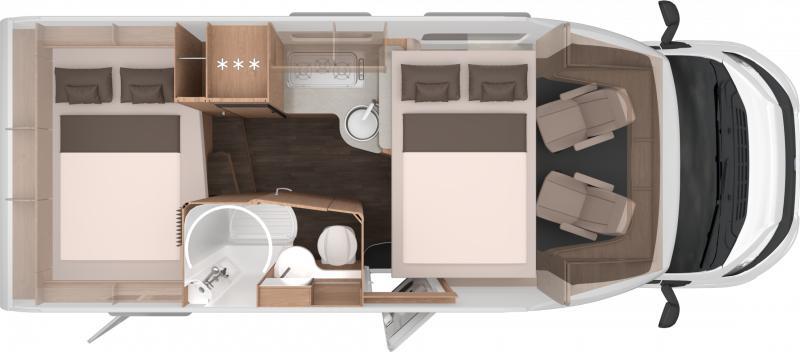 L!VE Wave kombinerar dynamiken hos en halvintegrerad husbil med de bekväma övernattningsmöjligheterna i en alkovmodell. Fem planlösningar och upp till sex sovplatser gör L!VE Wave till en modell som passar alla. I detta mobila hem får du modern inredning, hög kvalitet och en underbar semesterupplevelse i sann Knaus-anda.